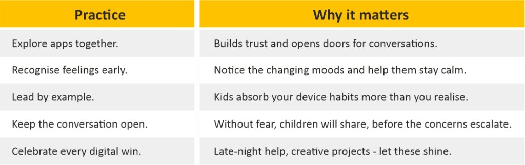Truth be told, digital well-being is about guiding children to use technology in ways that nurture learning, creativity, and rest. It requires habits that are realistic and repeatable.